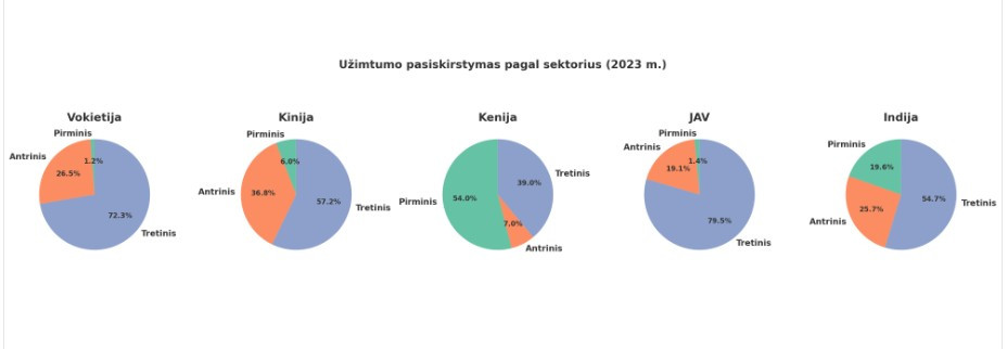 1. Kuriame ūkio sektoriuje (I, II ar III) dirba daugiausia žmonių Lietuvoje?
