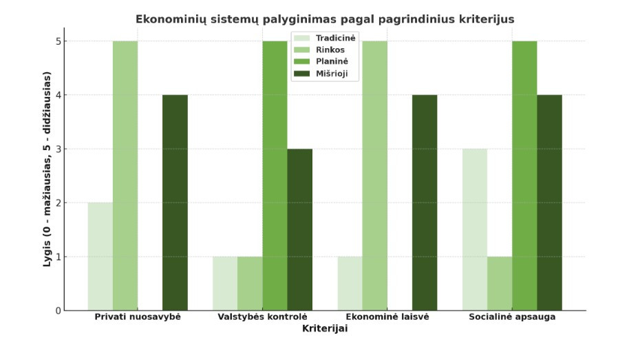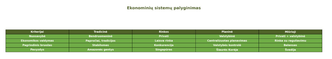 🟢 Mišrioji ekonomika – derinama laisva rinka ir valstybės reguliavimas, o ši sistema vyrauja daugelyje šiuolaikinių šalių.